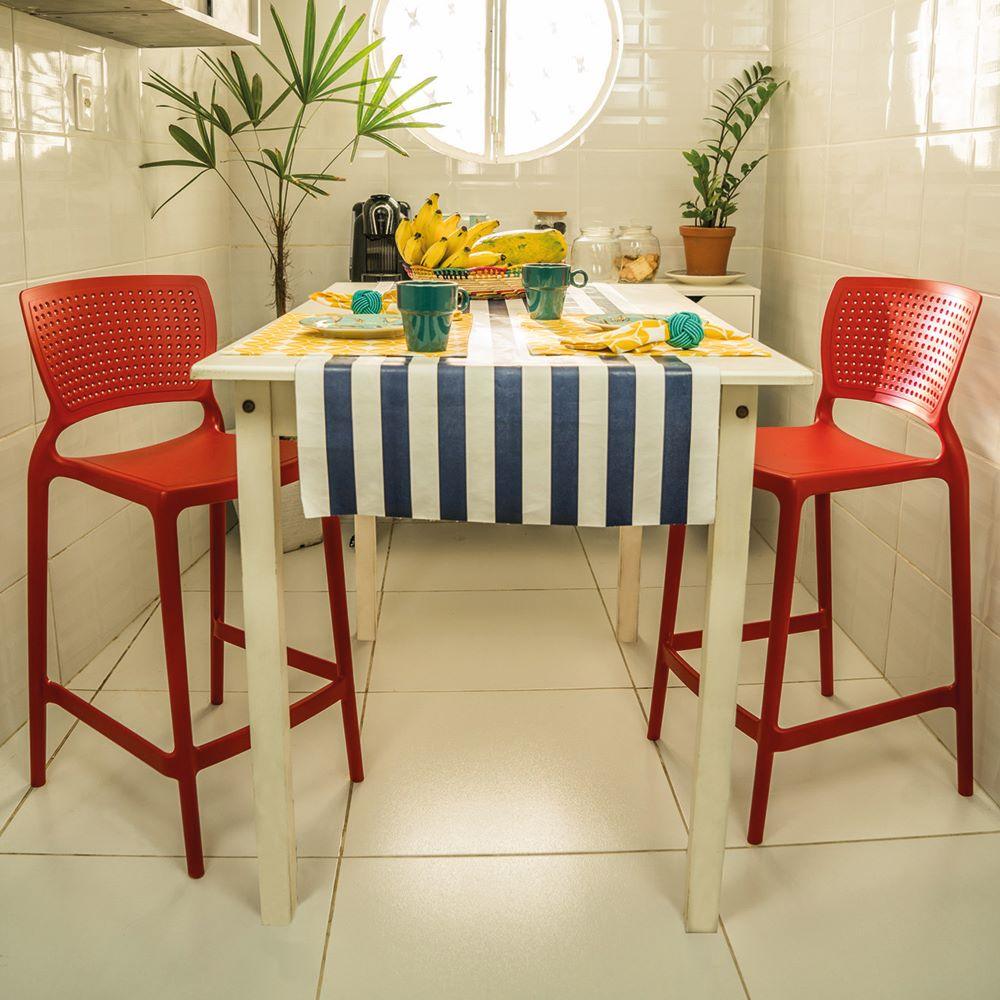 Silla Safira Alta, elaborado en Polipropileno y fibra de vidrio,Fabricada con materiales de alta calidad, es la elección perfecta para bares y soportar hasta 182 kilos, en color Rojo.