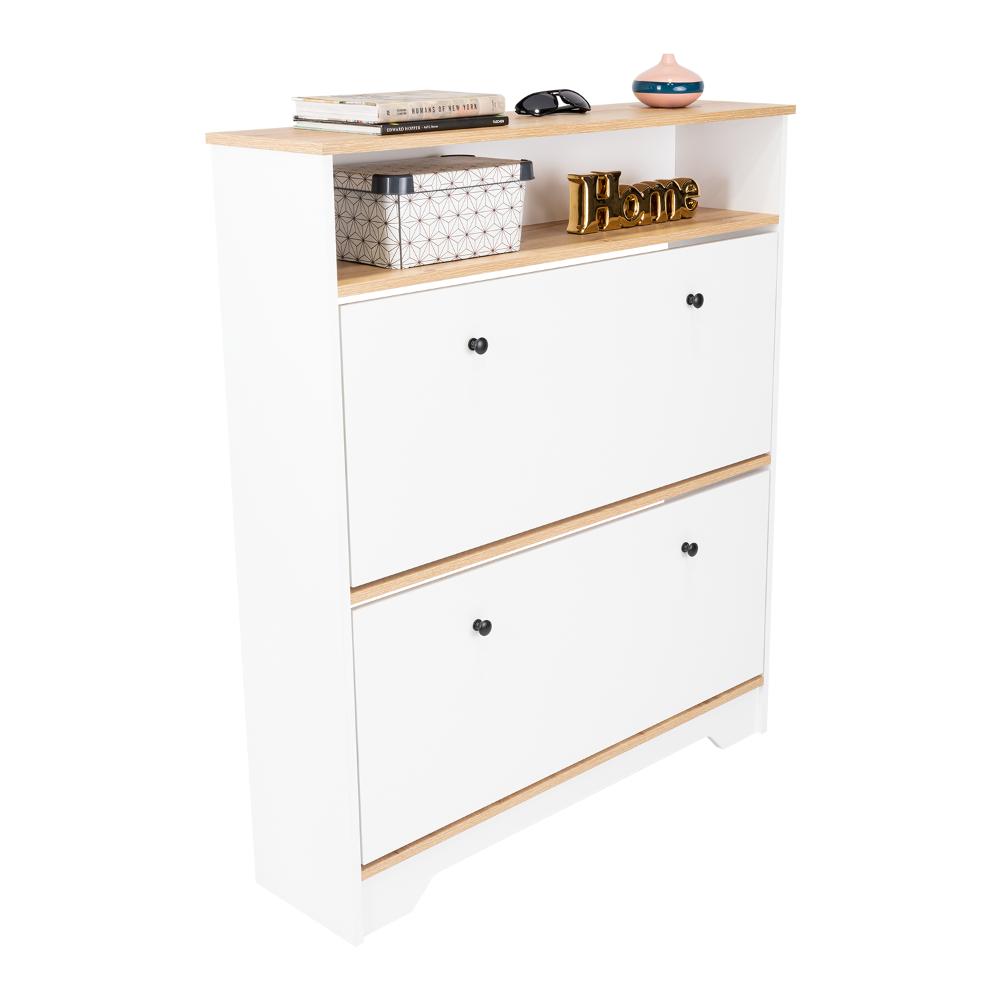 Zapatero, con espacio para almacenar zapatos, con diseño funcional y Dos puertas abatibles e incluye manijas metálicas.